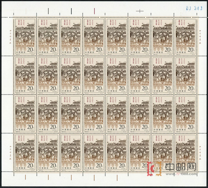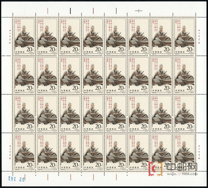 ZB-1995-26 孙子兵法(整版票),五张一版,一版32套票。全品,由于票幅较大,边纸可能会有少许小软折,属正常现象。购买请仔细查看大图。