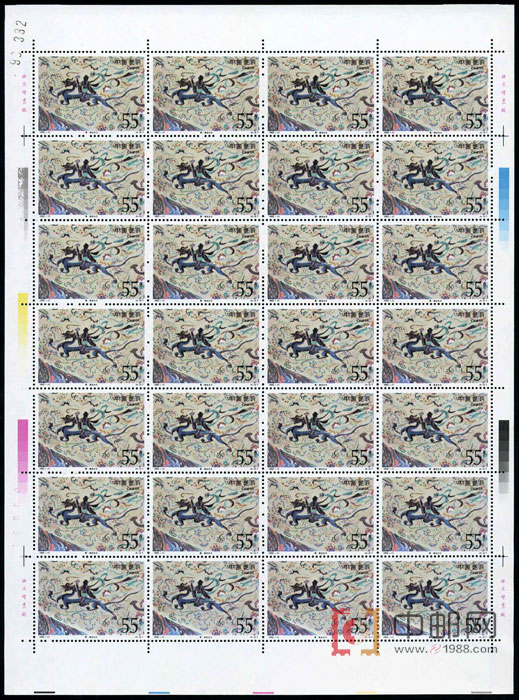 ZBP-1992-11 敦煌壁画(第四组)(整版票),四张一版,一版28套票。全品,由于票幅较大,边纸可能会有少许小软折,属正常现象。购买请仔细查看大图。