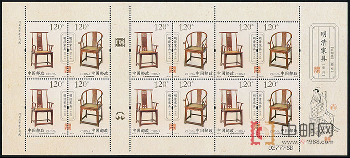 ZBP-2011-15 明清家具--坐具(整版票),三张一版,一版6套票,全品。由于票幅较大,边纸可能会有少许小软折,属正常现象。购买请仔细查看大图。