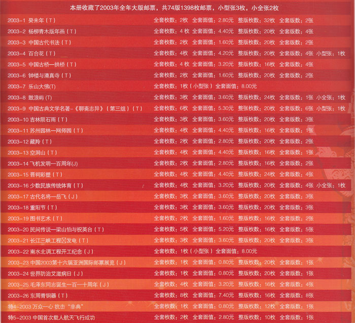 2003-1 癸未年--羊整版票