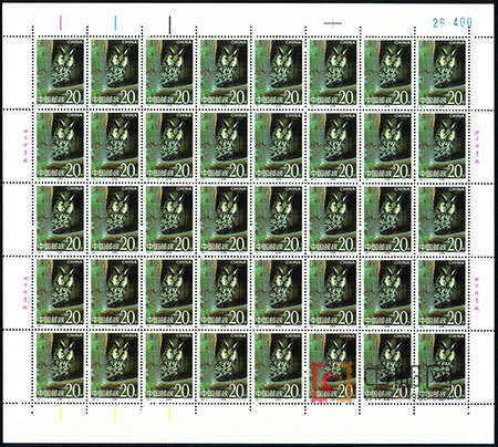 - 商品详情:ZBP-1995-5 鸮(整版票),四张一版,一版40套票。全品,由于票幅较大,边纸可能会有少许小软折,属正常现象。购买请仔细查看大图。