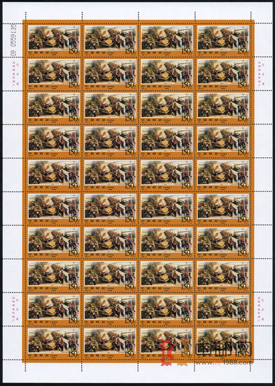 ZBP-1998-24 解放战争三大战役纪念(整版票),五张一版,一版40套票。全品,由于票幅较大,边纸可能会有少许小软折,属正常现象。购买请仔细查看大图。