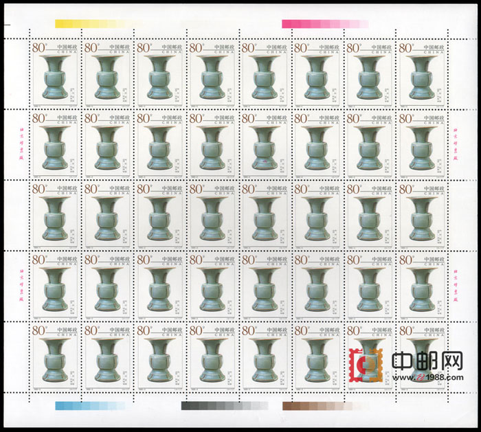 - 商品详情:ZBP-1999-3 中国陶瓷--钧窑瓷器(整版票),四张一版,一版40套票。全品,由于票幅较大,边纸可能会有少许小软折,属正常现象。购买请仔细查看大图。