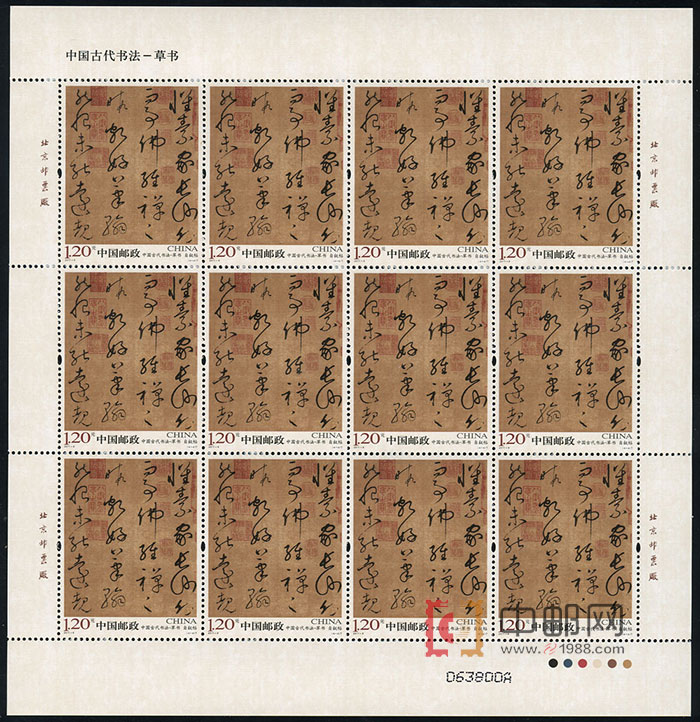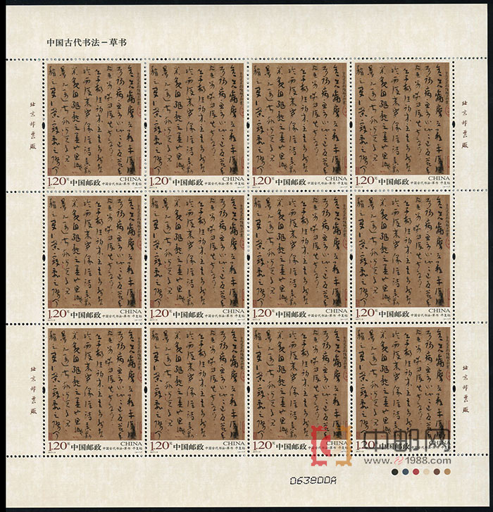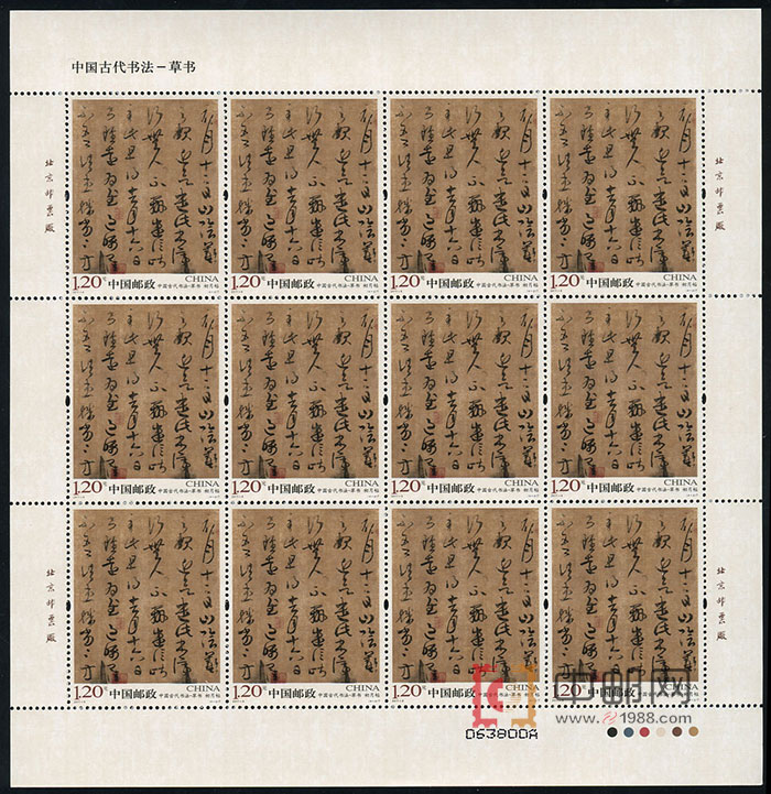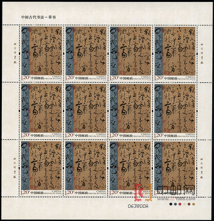 - 商品详情:ZBP-2011-6 中国古代书法--草书(整版票),四张一版,一版12套票。全品,由于票幅较大,边纸可能会有少许小软折,属正常现象。购买请仔细查看大图。