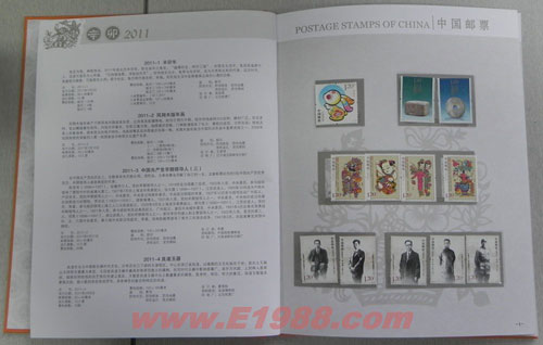 2011年中国集邮总公司普通册,内含以下所列邮品(蓝色字体的邮品是北方年册中没有的邮品):