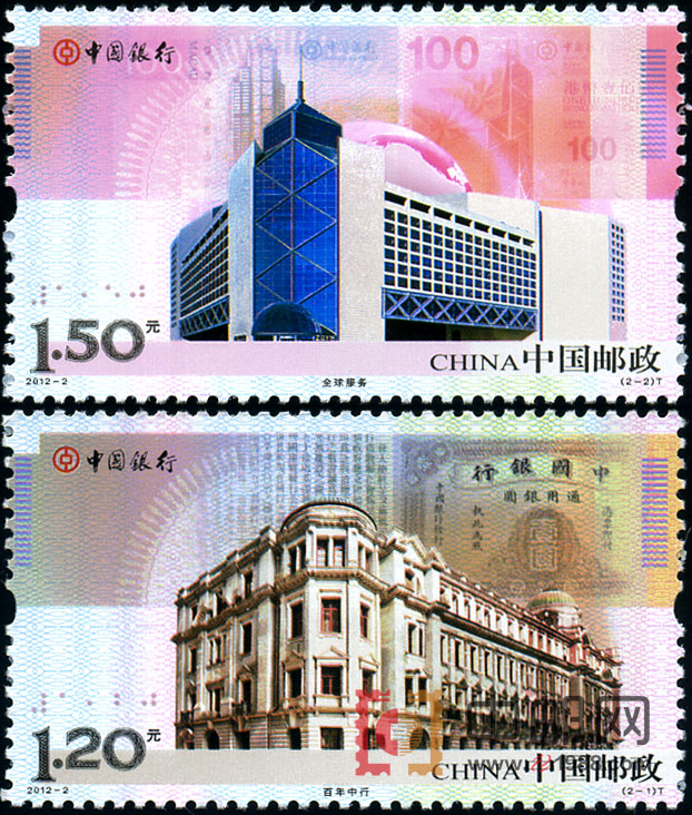 中国邮政定于2012年2月5日发行《中国银行》特种邮票1套2枚。