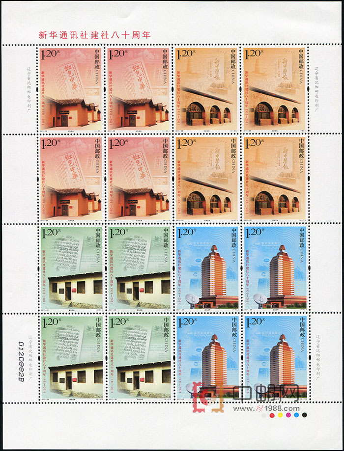 ZBP-2011-28 新华通讯社建社八十周年(整版票),一张一版,一版4套票。全品,由于票幅较大,边纸可能会有少许小软折,属正常现象。购买请仔细查看大图。