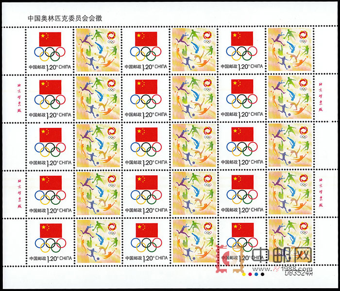 中国邮政定于2012年7月17日发行《中国奥林匹克委员会会徽》个性化服务专用邮票1枚。详情如下:图名:中国奥林匹克委员会会徽,面值:1.20元,邮票规格:30×30毫米,附票规格:30×30毫米;齿孔度数:12度,版别:胶印;防伪方式:防伪纸张、防伪油墨;设计者:夏竞秋,责任编辑:温文雅;资料提供:中国奥林匹克委员会;印制厂:北京邮票厂。出售办法:带有空白附票的个性化服务专用邮票用于邮票性化服务业务,同时发行附票带有“中国奥林匹克委员会商用会徽记及运动项目”图案的个性化服务专用邮票(整张枚数为15枚,整张规格为210×180毫米)。