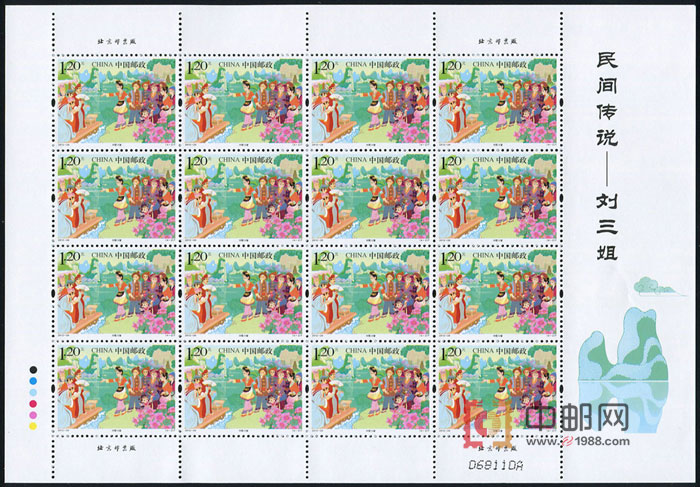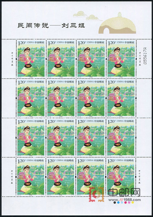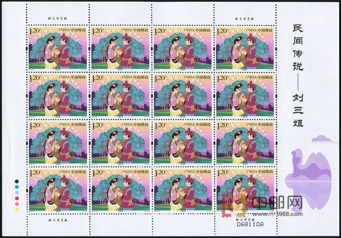ZBP-2012-20 民间传说--刘三姐(整版票),四张一版,一版16套票。全品,由于票幅较大,边纸可能会有少许小软折,属正常现象。购买请仔细查看大图。
