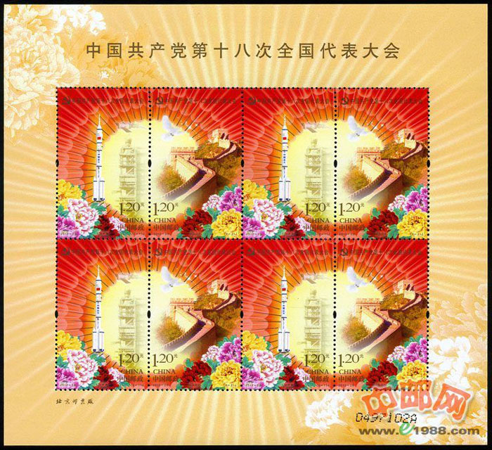 SL141 中国共产党第十八次全国代表大会小版票(2012年)