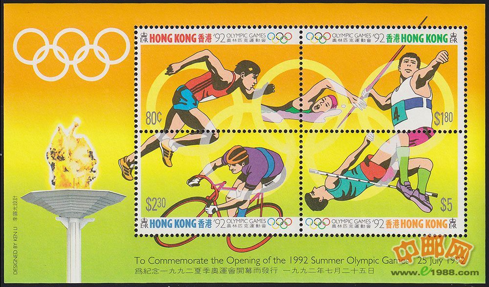 HK0525 C62M 奥运邮票加字(小全张)(1992年)