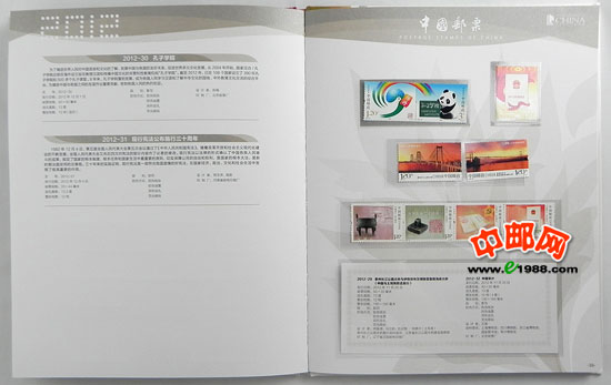 2012年共发行邮票32套,小型张3枚,小全张1枚,邮票面值:112元;小型张面值:18元;小全张面值:7.2元;小本票面值:32元。