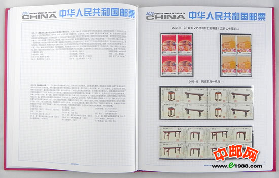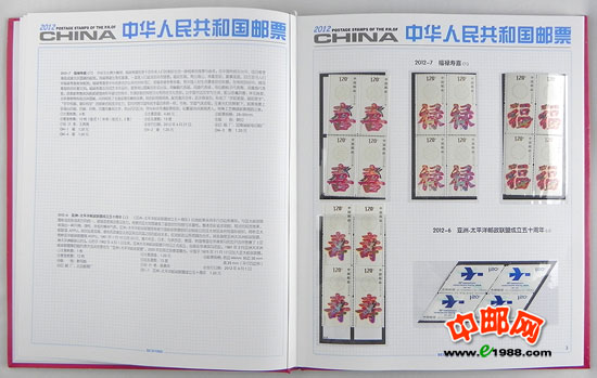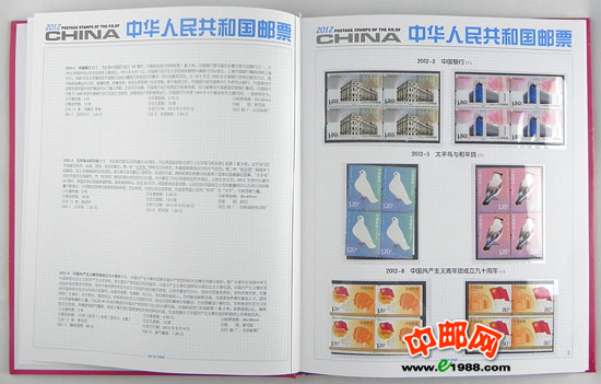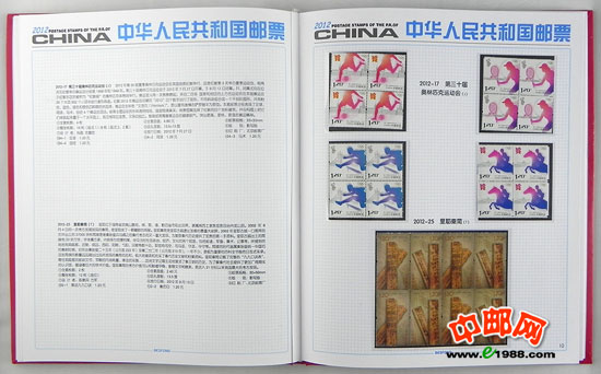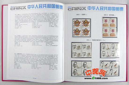 2012年四方连册,北方册,包含2012年国家邮政局发行的所有邮票和小型张,邮票是方连,小型张是四份。