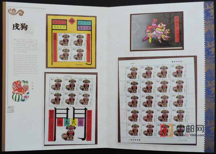 7、在部分全张票边纸上增加了如《丙戌年》邮票名称,此举如同小版张边纸上的票名,有画龙点睛之妙,并使全张票更加规范。