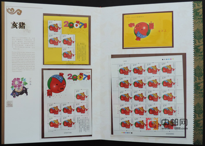 1、第三轮生肖票采用方型,票幅较以前的生肖票有所增大,画面也由前两套传统的民间艺术风格中脱颖出来,强调了现代感。