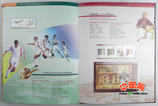 2002年中国、香港、澳门三地发行的所有邮票、小型张、小版票、小本票,装在中国集邮总公司的定位册里,做工十分精致,对邮票有效的双重保护。一册在手,方便您收藏中港澳三个地方的邮品!一册在手,别无所求!是您收藏、馈赠的最佳选择!