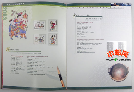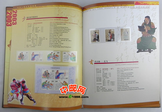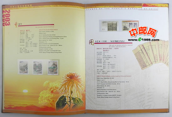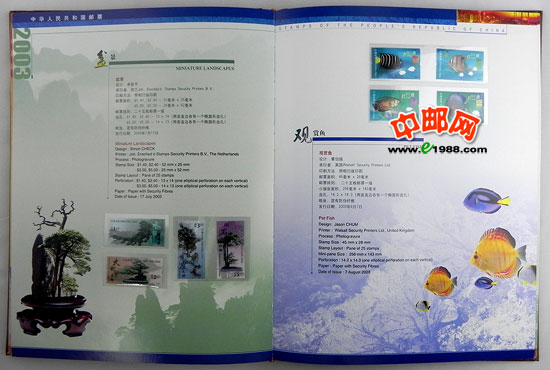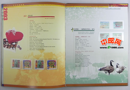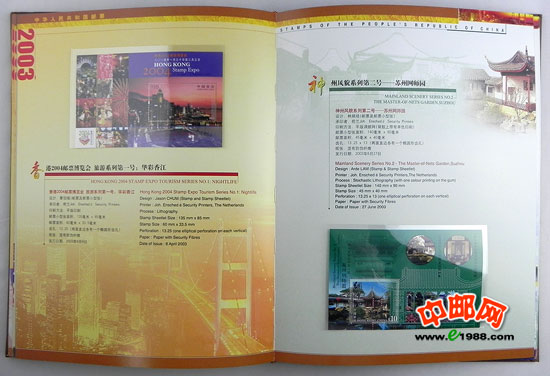 2003年中国、香港、澳门三地发行的所有邮票、小型张、小版票、小本票,装在中国集邮总公司的定位册里,做工十分精致,对邮票有效的双重保护。一册在手,方便您收藏中港澳三个地方的邮品!一册在手,别无所求!是您收藏、馈赠的最佳选择!