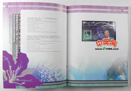 通用邮票小型张(第一辑)祝贺高锟教授荣获2009年诺贝尔物理学奖(小型张)