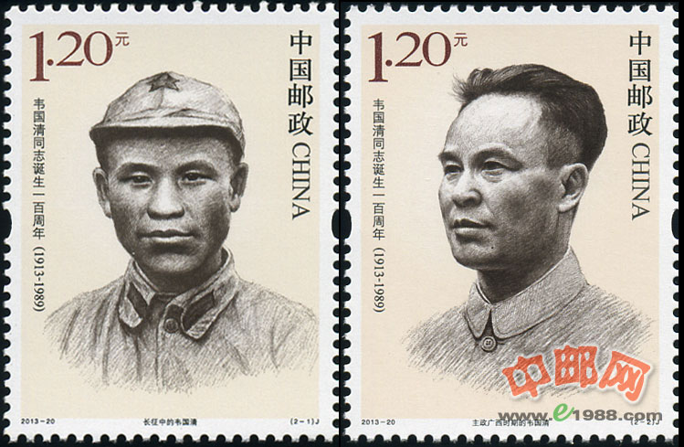 为纪念韦国清同志诞辰一百周年,中国邮政将于9月2日发行《韦国清同志诞生一百周年》纪念邮票一套两枚,面值均为1.20元,同日,中国集邮总公司还将发售首日封等邮品。