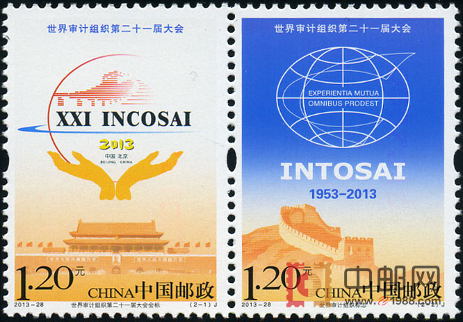 世界审计大会是世界上有影响的重要会议。据悉,中国邮政定于2013年10月22日增加发行的《世界审计组织第二十一届大会》纪念邮票一套2枚。邮票内容分别表现“世界审计组织第二十一届大会会标和天安门”、“世界审计组织标志和长城”等。
