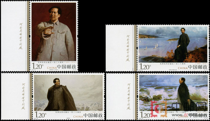 全套邮票4枚,面值4.80元,四枚邮票拟表现毛泽东同志四个不同时期的形象,此四枚邮票的票图名称分别为问苍茫大地谁主沉浮、北国风光、毛泽东在十二月会议上、心潮。
