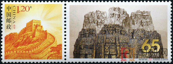 邮票介绍: 《长城》个性化服务专用邮票,原于2005年4月1日已经发行,面值为80分。2010版《长城》个性化服务专用邮票将面值改为1.2元后,于2010年9月3日纪念抗日战争胜利65周年纪念日发行。