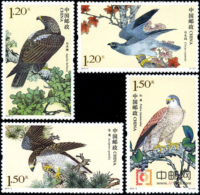 中国邮政定于2月23日发行《猛禽(二)》特种邮票1套4枚,为1987年发行的T114《猛禽》邮票再续新篇。