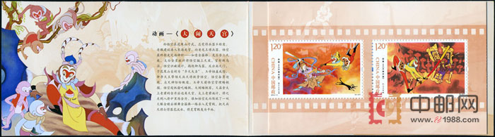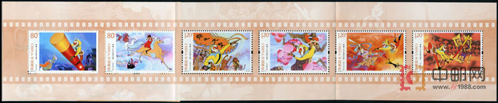 中国邮政定于2014年6月1日发行《动画--大闹天宫》特种邮票,全套六枚,同时发行小本票一本,编号(51)。六枚邮票将展现第一枚:龙宫夺宝(80分) 第二枚:官封弼马温(80分) 第三枚:智封齐天大圣(1.20元) 第四枚:大闹蟠桃园 (1.20元) 第五枚:勇斗天兵天将(1.20元) 第六枚:打上灵霄殿(1.20元) ,邮票票幅50x30mm。