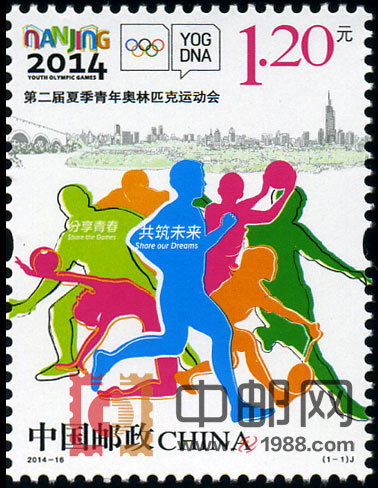 中国邮政定于2014年8月16日发行《第二届夏季青年奥林匹克运动会》纪念邮票1套1枚,面值1.20元。