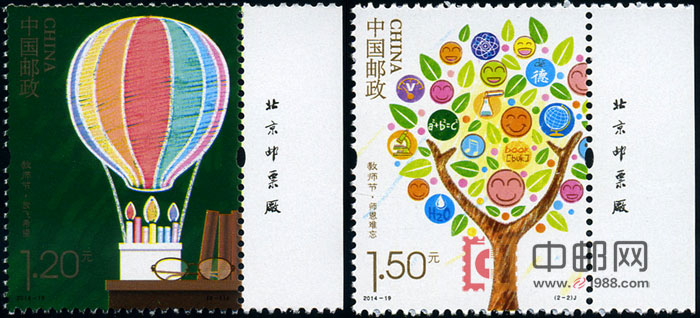 中国邮政定于2014年9月10日发行《教师节》纪念邮票1套2枚,全套邮票面值2.70元。