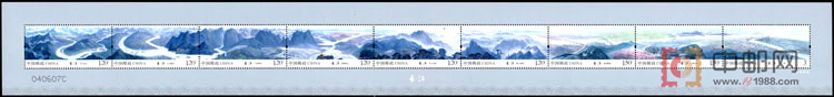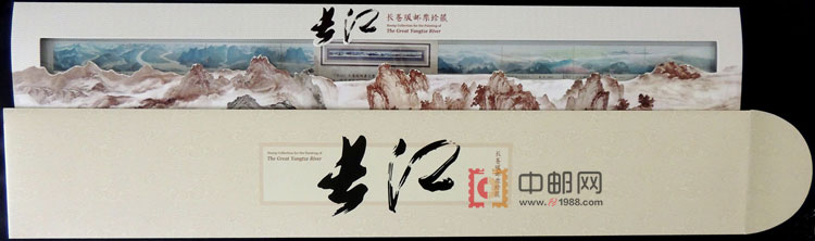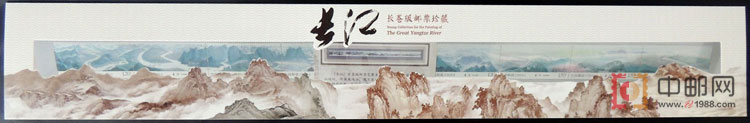 《长江》特种邮票以袁运甫先生《长江万里图》为蓝本设计而成。邮票以九图连印形式相衔展现长江万里奔腾的雄姿和气概。一版一套的全景式印刷方式,使长江全貌及美景尽收眼底。