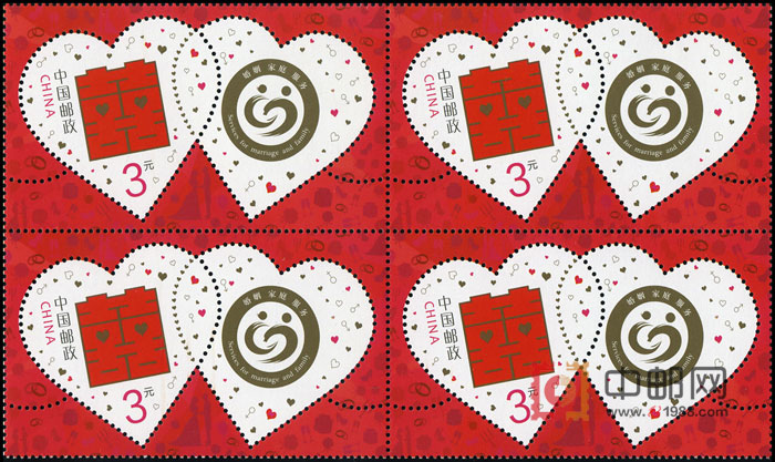 商品详情:中国邮政定于2014年12月1日发行《婚禧》个性化服务专用邮票1套1枚,邮票为心形异形邮票,同时发行附票带有婚姻家庭服务图案的个性化服务专用邮票。