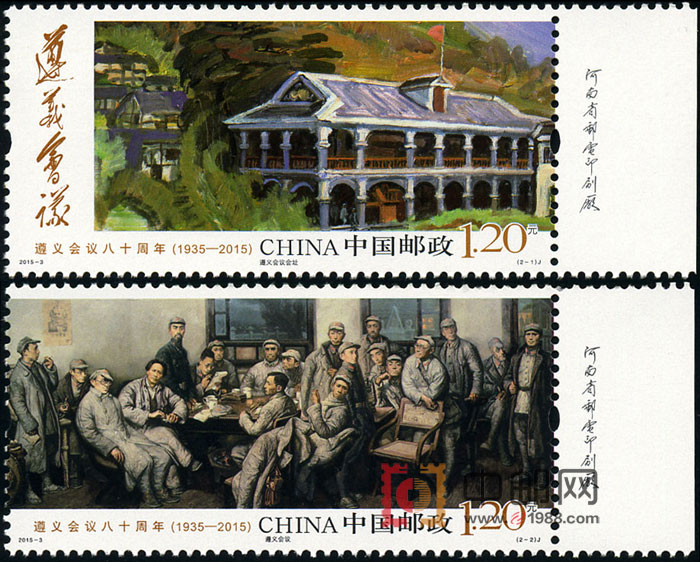 2015年遵义会议召开已经80年,为了纪念这一伟大时刻,1月15日将发行遵义会议召开80周年纪念邮票一套2枚,第一枚为遵义会议会址,第二枚为遵义会议开会时的场景,反映了当时我当的主要领导人。两枚面值均为120分。