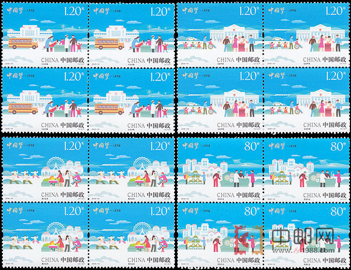 中国邮政于2013年开始启动中国梦邮票系列,分三组展现了国家富强、民族振兴、人民幸福。前两组发行后,社会反响强烈,受到了社会和广大集邮爱好者的喜爱。本组邮票的发行,是中国梦邮票系列的收官之作。