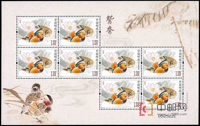中国邮政定于2015年8月20日发行《鸳鸯》特种邮票一套一枚,面值1.2元。