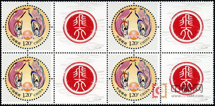 GXHP42 《飞天》个性化邮票(四方连)
