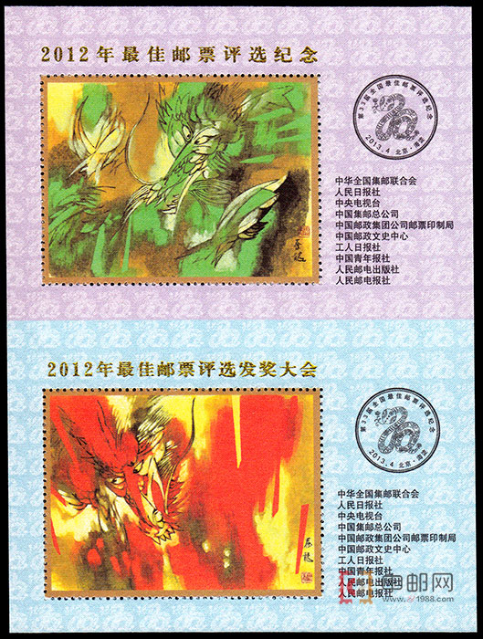 2012年龙年最佳邮票评选纪念、发奖大会,丝绸双连张。