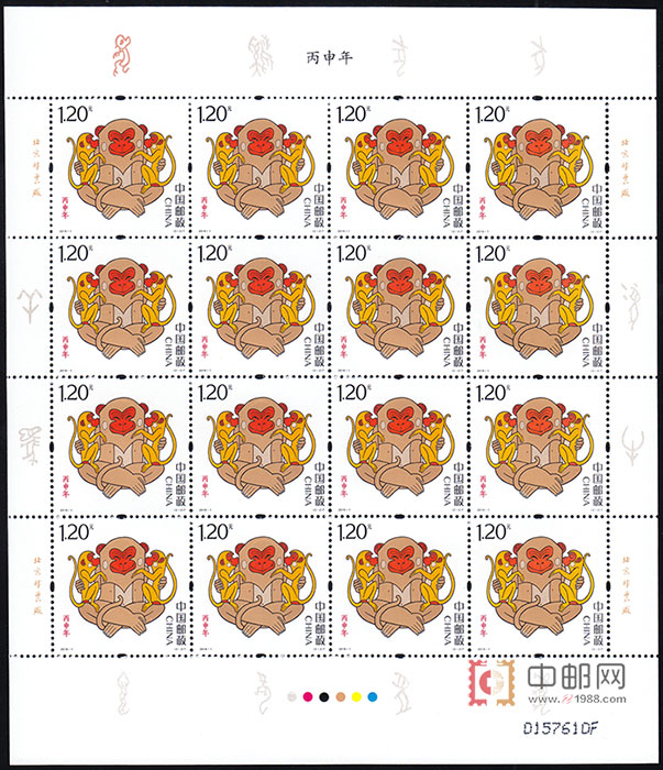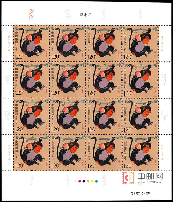 图案面值:(2-1)T 灵猴献瑞 1.20元(2-2)T 福寿双至 1.20元2016-1 丙申年猴票(第四轮猴票)再次作为首票发行将于2016年1月5日发行。据悉,2016-1 丙申年猴票(第四轮猴票)的设计者为我国第一枚生肖邮票《庚申年》猴票的创作者、美术界泰斗黄永玉先生。