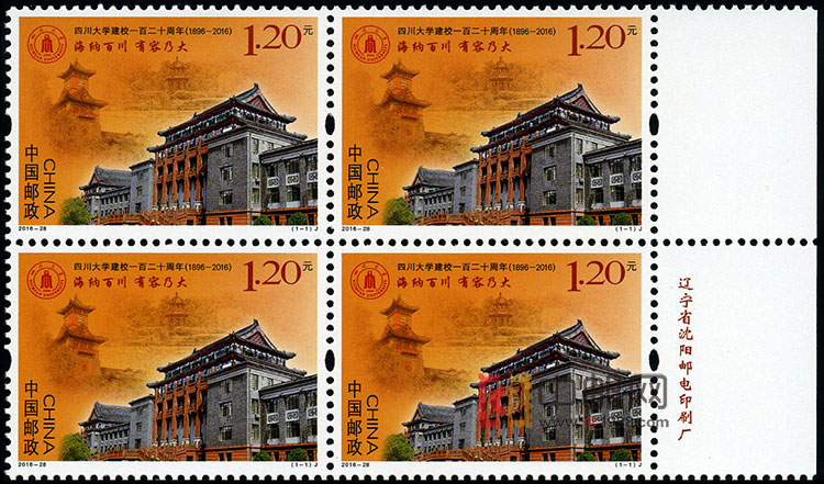 2016-28 四川大学建校一百二十周年(厂铭四方连)