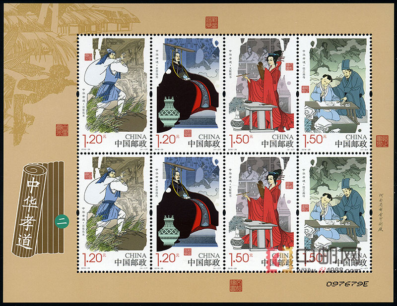 - 商品详情:中国邮政已于2014年9月30日发行《中华孝道(一)》特种邮票1套4枚,由此拉开该系列邮票的序幕,据推测,该 系列邮票将发行六组(每组4枚)完全展现中国传统的“二十四孝”故事。