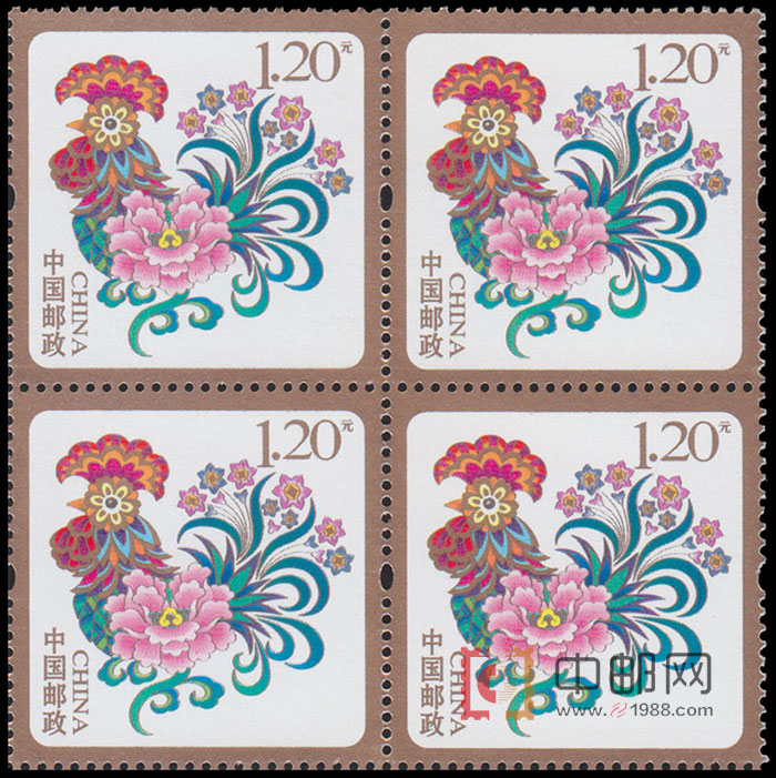 2017-贺年专用邮票《贺新禧、富贵吉祥》(1枚1套)(四方连)
