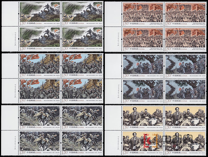 中国邮政定于2016年10月22日发行《中国工农红军长征胜利八十周年》纪念邮票1套6枚,图案内容分别为:长征出发、遵义会议、四渡赤水、过雪山草地、胜利会师、缅怀先烈 不忘初心 走好新的长征路。全套邮票面值7.80元。
