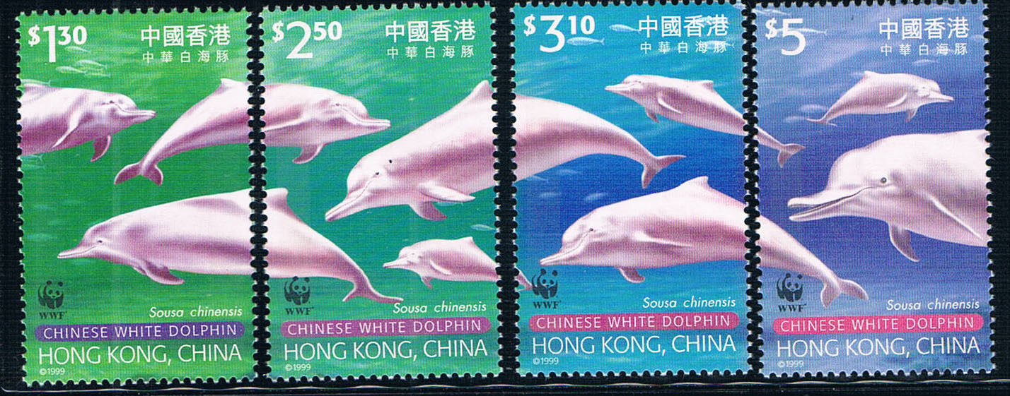HK0135香港1999熊猫徽WWF中华白海豚4全新0918
