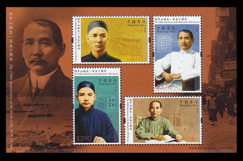 香港2016年 孙中山诞生一百五十年邮票小全张