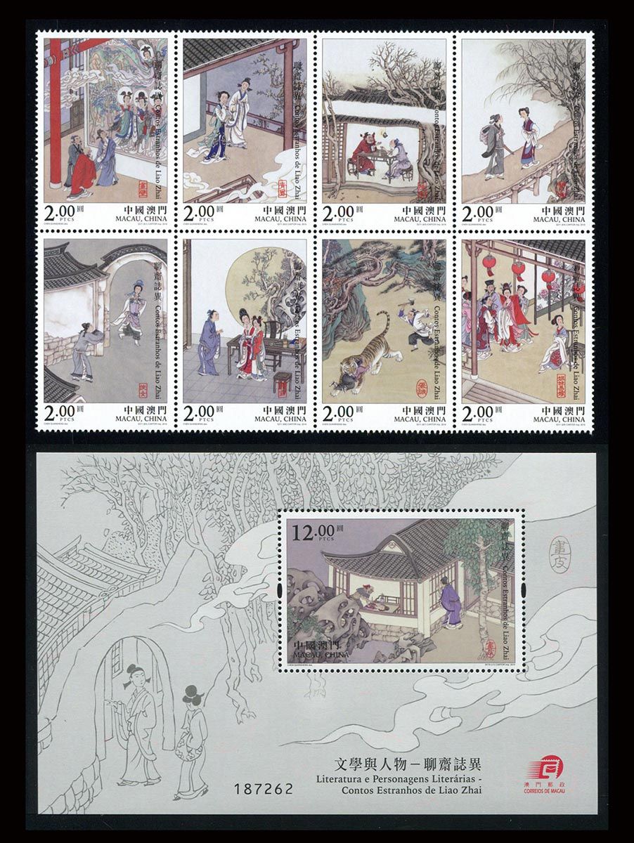 中国澳门邮政计划于2016年12月1日发行本年度最后一套新邮《文学与人物—聊斋志异》。全套邮票8枚、1枚小型张。