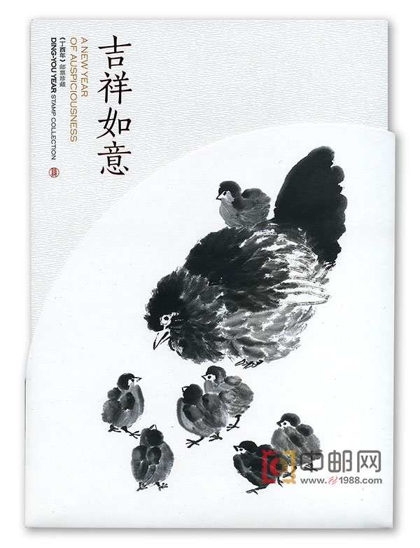 《丁酉年》鸡票出自著名艺术家、北京奥运会吉祥物“福娃”的设计者韩美林之手。而齐白石老人在九十一岁高龄时也曾画了一幅题名为《全家福》的画,画面上就是公鸡和母鸡带着一群小鸡,寓意全家老小都“吉利”。