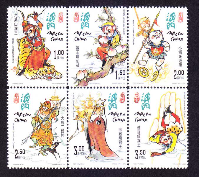 澳门邮票 2000年文学与人物-西游记.孙悟空 6连新