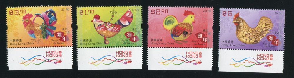 $1.70 –历史悠久的中国布艺,以布为原料,结合剪纸、刺绣和绘画工艺。邮票展示的布艺公鸡,色彩鲜艳,造型活泼可爱;背景的水仙花是香港常见的年花,寓意富贵吉祥。