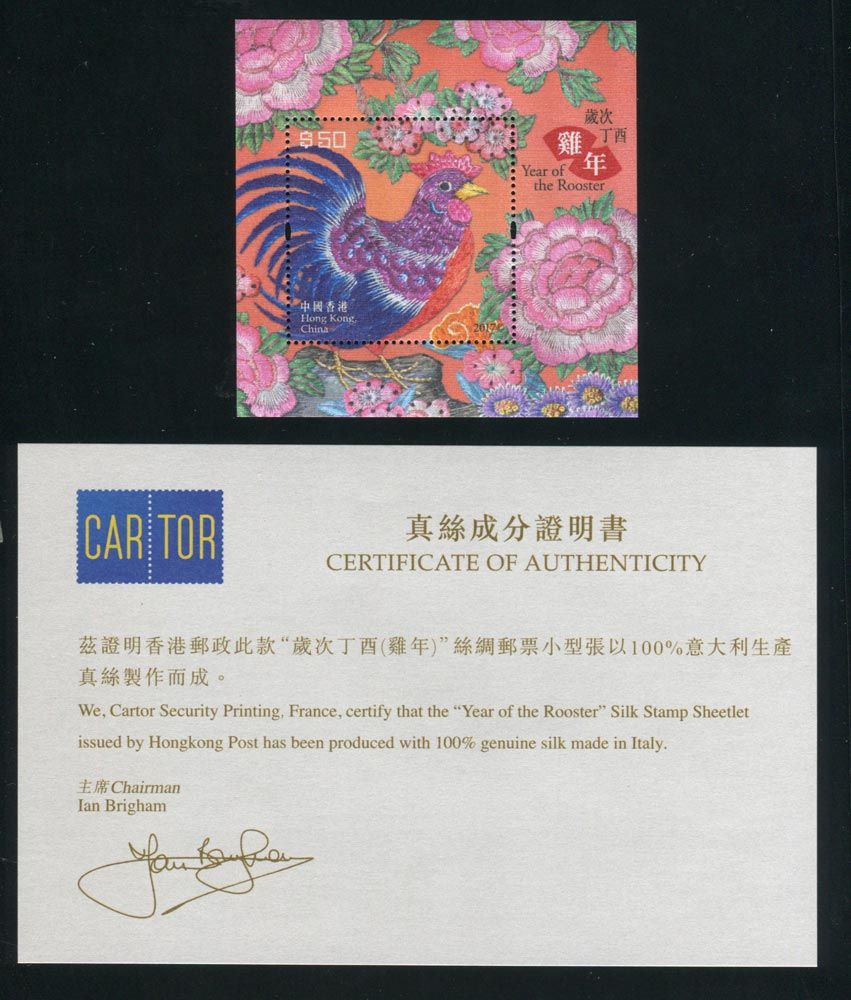 香港2017年鸡年(丝绸50元面值)小型张