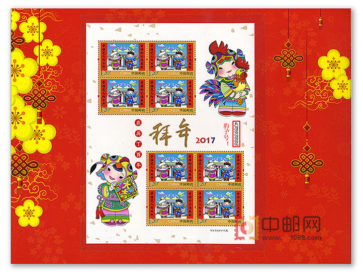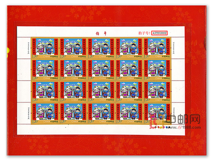 大拜年邮票珍藏邮折,内含中国邮政发行的吉祥号码《拜年》邮票(版式一、版式二),以及吉祥号码个性化邮票收藏证书。